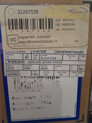 Бренд: VOLVO Номер: 31267539 Наличие: Есть в наличии